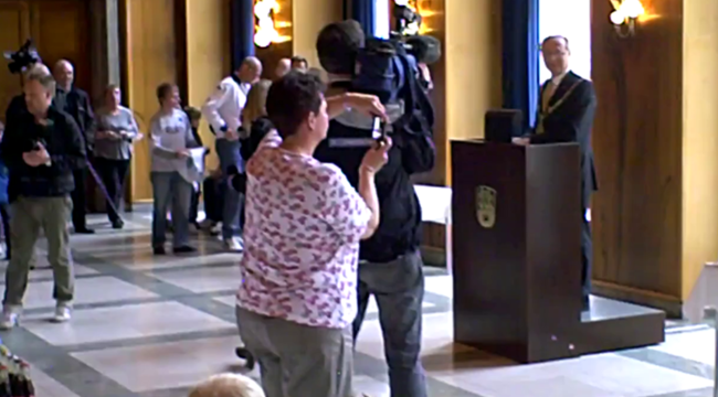 Borgmester Jørgen Glenthøj taler ved fejringen af de nykårede danske fodboldmestre fra FC København på Frederiksberg Rådhus 17. maj 2010. Klippet varer 3.16 minutter.
