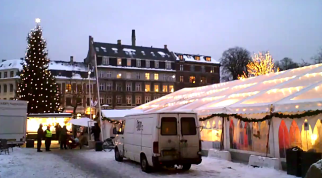 Traditionen tro afholdes der i december måned julemarked på pladsen foran Frederiksberg Rådhus. Optagelserne stammer fra 8. december. Klippet varer 0.26 min.