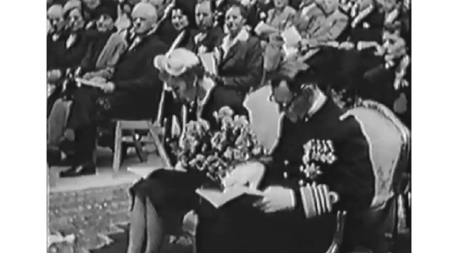 Poul Reumert reciterer ved rådhusets indvielse 1953