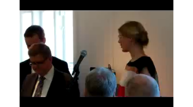 Storm P. Museets direktør Iben Overgaard taler ved genåbningen af museet 2. maj 2012