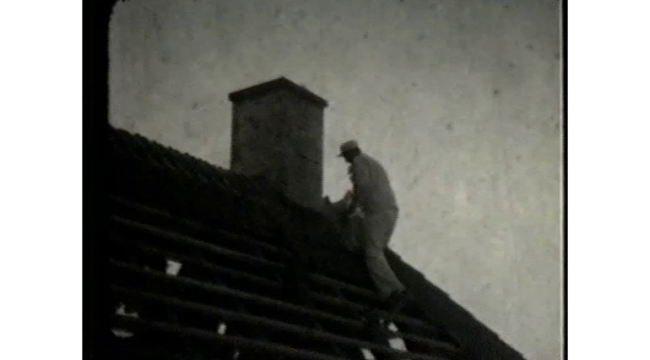 Taget lægges på "Nyelandshuses" nordfløj 1940. Fra filmen "Frederiksberg Boligselskab 1930-1940".